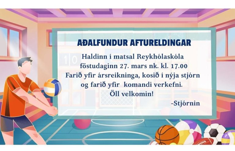 Aðalfundur ungmennafélagsins Aftureldingar verður haldinn í matsal Reykhólaskóla föstudaginn 27. mars, kl. 17:00.