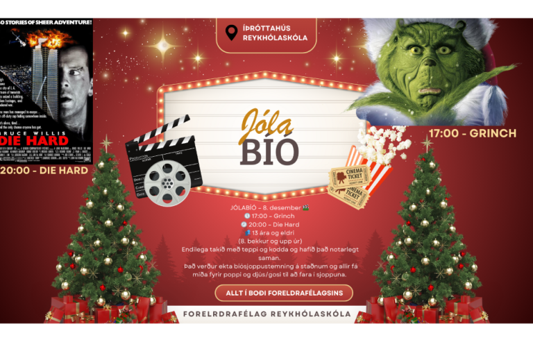 Þann 8. des. verða sýndar 2 myndir, GRINCH kl.17:00 og DIE HARD kl. 20:00
